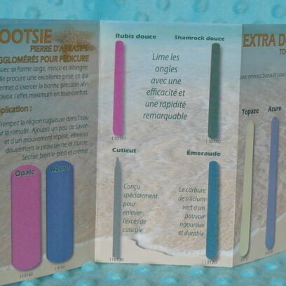 ***Important : Toutes ces limes à ongles pour enlever l’ excès de poussière d’ongle et des pierres Footsie pour enlever les peaux morte indésirable sur les produits peut être lavée à l’aide d’une petites brosse sous l’eau savonneuse et ou exemple CS20 désinfectant de niveau élevé .